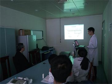 本周,我科俞万钧书记的研究生,宁波大学医学院呼吸专业的在读硕士研究生姜昊同学在十八楼示教室进行了研究课题的进程中期论证。姜昊同学的研究课题主要是慢性阻塞性肺疾病及支气管扩张患者的细菌免疫应答,硕士导师俞万钧博士及我科王华英博士,马坚硕士等对课题目前存在的问题进行了热烈地探讨。(徐涛)