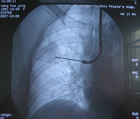 引导或定位下,支气管镜先端部固定于段支气管口,将活检钳送至病变部位,并确定活检钳的位置准确无误,钳取病变组织,进行诊断。