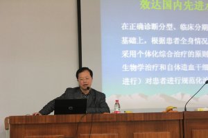 会上裴仁治主任医师向大家详细介绍了我院血液科在过去取得的成果和发展现状。我院血液科作为宁波市重点学科,在各级领导关心支持下,经过全科医务人员20多年的不懈努力和艰苦奋斗,不断成长和发展。小到刚出生的婴儿病患,大到九十多岁的老年病患,裴院长用一张张照片生动地向大家讲述了科室20多年来走过的风风雨雨,在全科室医护人员的共同努力下,为血液病患者创造了更多的治愈机会。