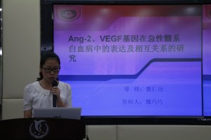 5月27日下午,我院副院长、温州医学院硕士生导师裴仁治指导的2014届硕士研究生毕业论文答辩会在我院住院部二楼会议室顺利举行了,温州医学院俞康教授担任答辩委员会主席,答辩委员会由宁波市医学会秘书长徐薇主任、宁波市第二医院血液科钱素英主任组成,我院科教科及血液科陆滢主任、马俊霞主任、刘旭辉主任和科室相关人员参加。硕士研究生魏巧巧对本人学位论文《Ang-2、VEGF基因在急性髓系白血病中的表达及相互关系的研究》向答辩委员会进行答辩报告。答辩会紧张有序进行,现场学术氛围浓厚。答辩人就答辩委员会提出的问题作出认真回答,虚心听取答辩委员会提出的宝贵意见。经答辩委员会讨论,一致认为其毕业论文已达硕士学位论文水平,全票通过论文答辩,建议授予魏巧巧临床医学专业硕士学位,并对导师裴仁治表示祝贺。
