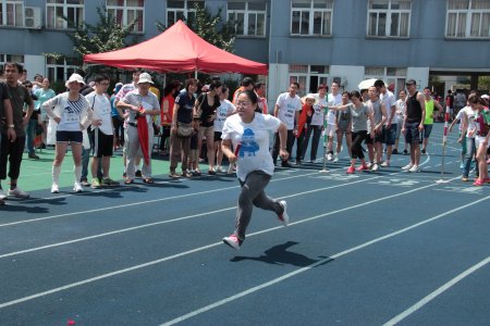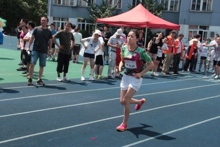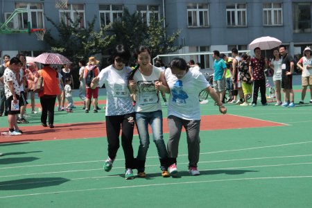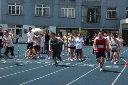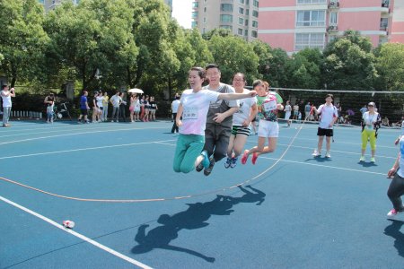 6月15日我院在江东中心小学举办了一场激烈又趣味十足的运动会。来自血液科的十余位年轻“健将”,披风上阵。他们中有刚下后夜班的护士美眉,有腰围大过臀围的年轻妈妈,有从小就没参加过运动会的屌丝,有坐十个小时火车刚赶到的女汉子,当然还有我们“重量级”的刘旭辉主任等等。我们的阵容绝对“养眼”,面对其他科室各路高手的狂轰乱炸,“健将们”拼了老命,其中50米迎面接力、群燕齐飞,我们都取得了小组第一的好成绩,期间我们的刘主任强忍着接力时复发的腰痛,坚持同七位女生完成了一分钟的跳绳,虽然结果是都没能进入前三名,比赛的最后我们一个奖牌都没得。但是大家却玩得很开心,结果哪有过程更让人兴奋的呀!年轻而又充满朝气的血液科,像赛场上的运动员一样,不断挑战、勇于突破,正如我们的口号:青春如火,超越自我,血液同胞,奋勇拼搏!