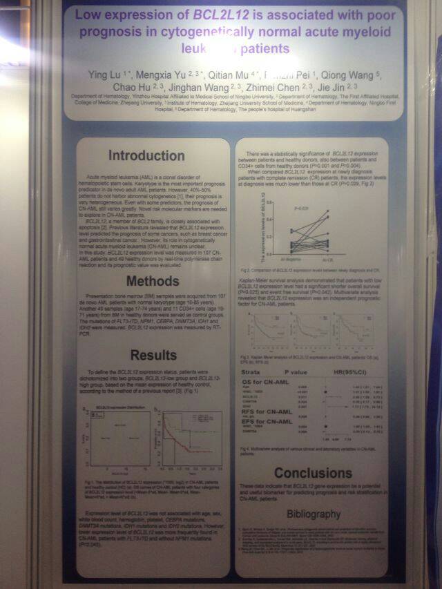 9月6号-9月7日,正值中秋前夕,受全体血液学同道关注的第13届中华医学会全国血液病学术会议在京召开。在本次会议上,陆道培,阮长耿,陈赛娟三位院士作了专题讲座,分别涉及恶性血液病,出凝血疾病,转化医学在血液学的应用等三大方面。在之后的1天时间里,会议特别针对不同的血液病专业领域开展了学术交流,内容主要涉及:造血干细胞移植,白血病,淋巴瘤,骨髓瘤,再生障碍性贫血等临床及基础方面的专题,使与会者感到整个会议内容丰富,涵盖面广,又侧重于临床研究,对实际工作帮助很大。我科共有6位医生参加了这次盛会,感到获益匪浅,此外我科共有6篇文章在会议交流,希望通过我们的继续努力,在未来的全国年会中发出属于我们的声音!