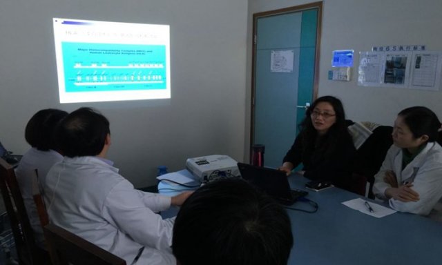 我院自1996年开展宁波市第一例骨髓移植以来,目前已完成自体造血干细胞移植、异基因造血干细胞移植、脐带血移植共140余例。随着近几年造血干细胞移植患者的急剧增加,为了更好地筛选异基因供者,进一步提高造血干细胞移植的疗效,我们有幸邀请到苏州大学附属第一医院主任技师,中华骨髓库HLA高分辨配型实验室主任何军教授来我院授课。课上,何军教授为我们详细讲解了如何在异基因造血干细胞移植中遴选供者,在亲缘异基因造血干细胞移植中,强调如果有2个以上亲缘供者,建议患者和潜在供者进行KIR基因分型检测,从而选择最佳供者提高疗效;在无关异基因造血干细胞移植中,建议接受供受者HLA全相合造血干细胞移植,若供受者存在HLA某一位点不合,首选一个位点的等位基因不合,次选一个位点的抗原不合;对于供患者HLA-A,B,C,DRB1,DQB1高分辨基因分型,无全相合无关或亲缘供者,建议如果亲缘供受者存在HLA 8/10以上相合供者,且HLA-Ⅰ类位点相合,推荐选择亲缘供者,如果CMDP有HLA 9/10等位基因可允许错配潜在供者,推荐选择无关供者,同时需根据不同疾病类型选择供者,最后何军教授为我们介绍了影响无关供者异基因造血干细胞移植的预后因素。通过本次学习,对于那些需要移植并且有多名供者的患者,我们可以为他选择最佳供者,因而达到移植最佳疗效。