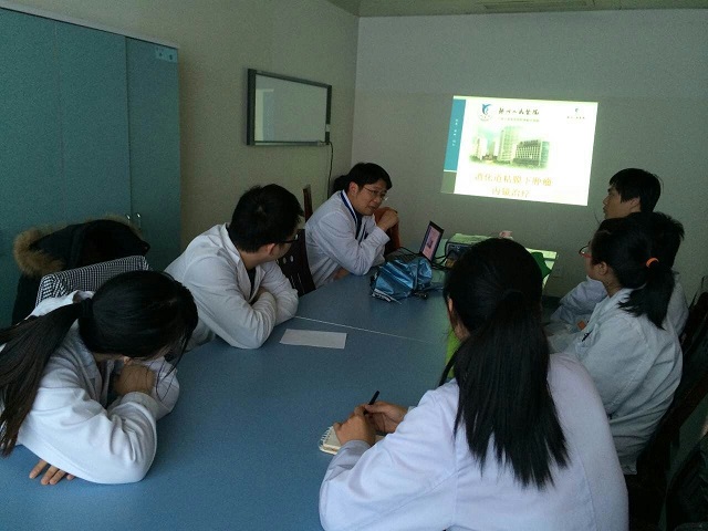 周二,在消化科许丰主任向科室轮转医师及实习医师介绍粘膜下肿瘤的内镜治疗,如内镜下粘膜下剥离技术(ESD)、内镜下粘膜切除技术(EMR)、内镜下粘膜下挖除技术(ESE)等,包括其治疗适应症、禁忌症、并发症、治疗心得等,图文并茂,内容丰富,科室学习氛围浓郁,大家获益匪浅。