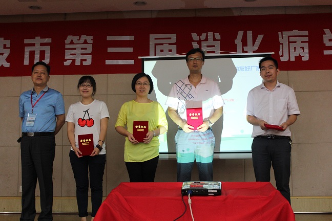 9月11日--13日,宁波市第三届消化病大会在南都宾馆召开,我院消化内科许丰主任的《POEM联合STER术治疗贲门失迟缓症合并食管粘膜下肿瘤》手术视频在这次大会上脱颖而出,获得最佳手术视频奖(唯一),同时我科徐月梅主治医师的有关局限性门脉高压症致消化道出血的一例病例分享获得了优秀病例奖,受到了与会消化科专家的一致好评。