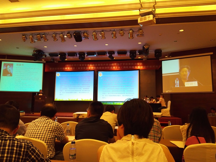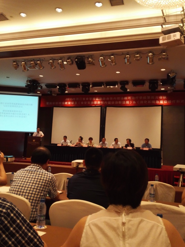 2015浙江省食管胃底静脉曲张内镜诊断与治疗学组第四次会议暨国家级教育继续项目《食管胃静脉曲张内镜诊治新进展》和《消化系统急重症诊疗新进展》于8月28日至29日在浙江省三立开元名都大酒店会议中心隆重召开。本次会议由浙江省医学会消化病学分会食管胃底静脉曲张内镜诊断与治疗学组主办,浙江大学附属第一医院消化内镜中心和杭州师范大学附属医院承办。中国食管胃底静脉曲张诊治学组副组长、浙江省食管胃底静脉曲张内镜诊断与治疗学组组长季峰主任及大部分学组成员出席了会议。我科多名学科骨干在科主任许丰主任的带领下参加了本次学术会议,许丰主任作为受邀专家主持了下午的专题讲座。