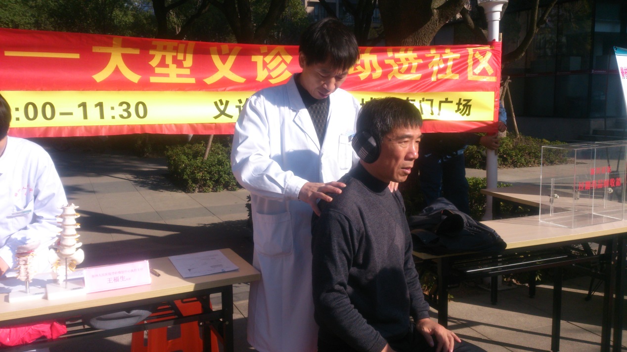 2013年11月30日早上09:00-11:30,鄞州人民医院脊柱微创中心执行主任王福生携科室人员至鄞州区城兴